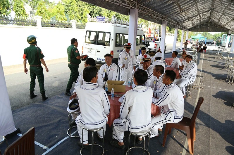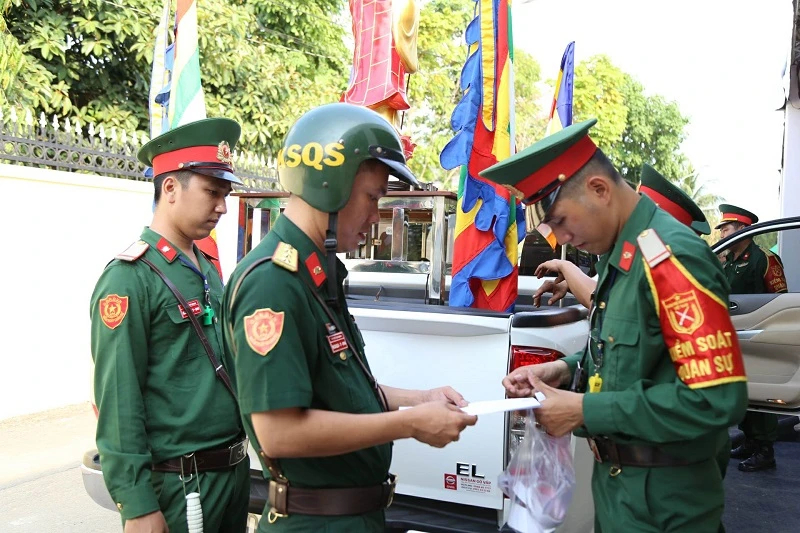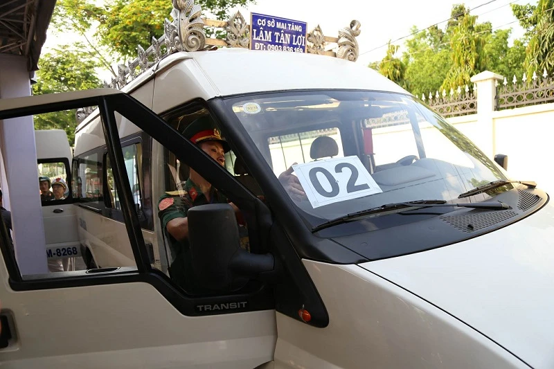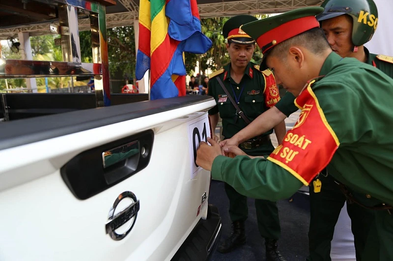 Sau đó, lực lượng quân đội tiến hành dán số thứ tự cho đoàn xe.
