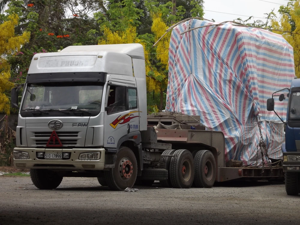 Sau 2 ngày vào địa bàn tỉnh Long An, đến 17 giờ chiều 22-4, chiếc xe đầu kéo 51C-178.99 kéo rơ moóc 51R-057.97 chở theo máy biến thế nặng cả trăm tấn vẫn nằm “lì“ cạnh khoảng sân của DNTN Xăng dầu Voi Lá (305 Quốc lộ 1A, thị trấn Bến Lức, huyện Bến Lức, tỉnh Long An). Hiện tại máy biến thế đã được các tài xế dùng bạt phủ kín, tại khu vực quán cà phê gần đó có khoảng 2,3 người túc trực canh chừng, ăn nghỉ tại chỗ.