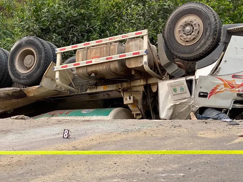 Tại hiện trường, xe bồn chứa bê tông lật ngang ở vực sâu và hư hỏng nặng. Tài xế đã tử vong, mắc kẹt trong cabin.