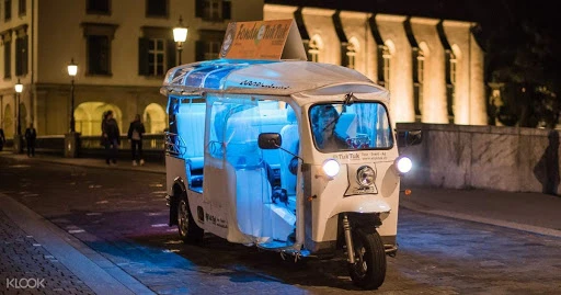 Mẫu xe tuk tuk có màng ngăn bằng nhựa trong suốt. Ảnh: Alamy