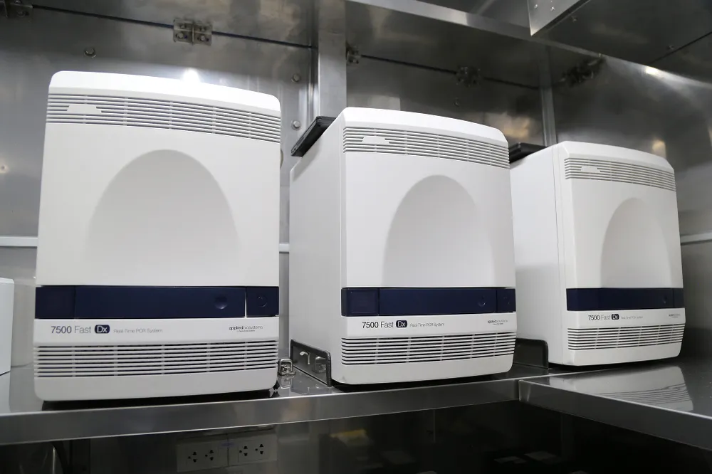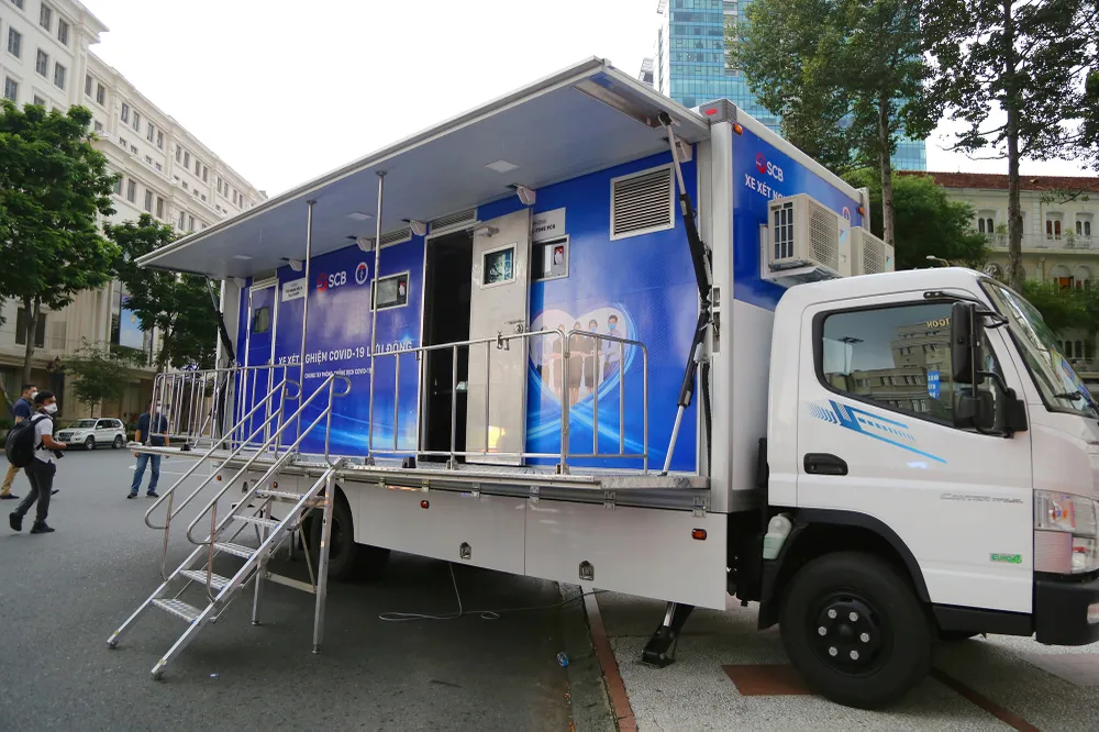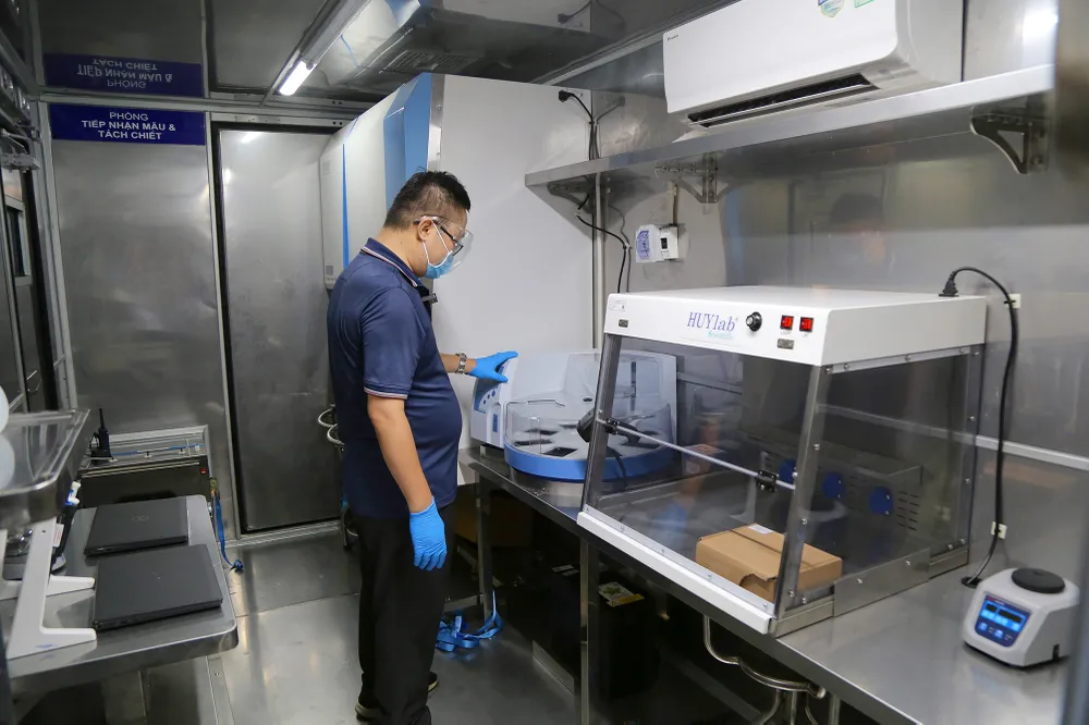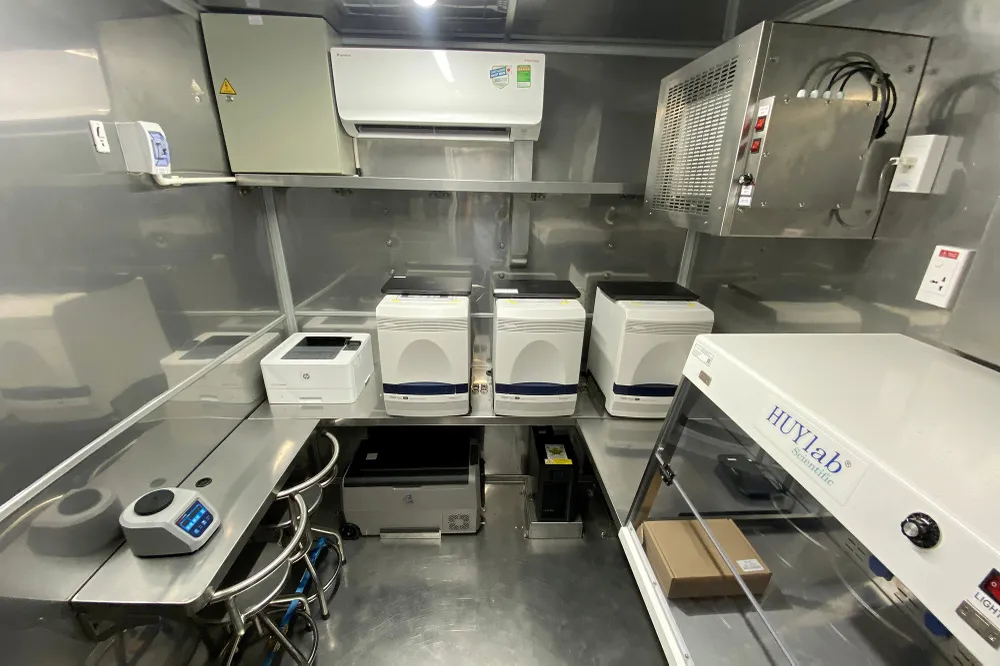 Với 3 máy xét nghiệm Real-time PCR trên mỗi xe giúp cho xe xét nghiệm đạt công suất từ 2.000-3.000 mẫu/ngày.