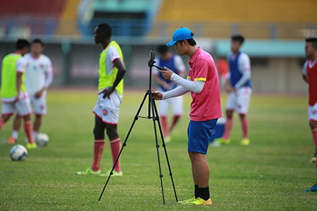 Buổi tập được trợ lý HLV ghi hình bằng camera.