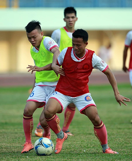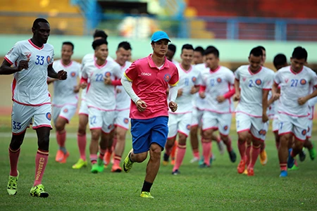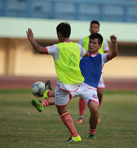 Khá mệt sau cuộc hành trình dài nhưng các cầu thủ Sài Gòn vẫn tập với cường độ cao.