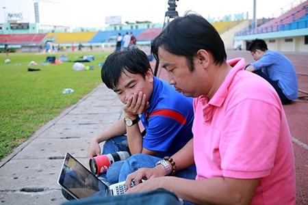 Các phóng viên tác nghiệp nóng ngay tại sân sau buổi tập của CLB Sài Gòn.