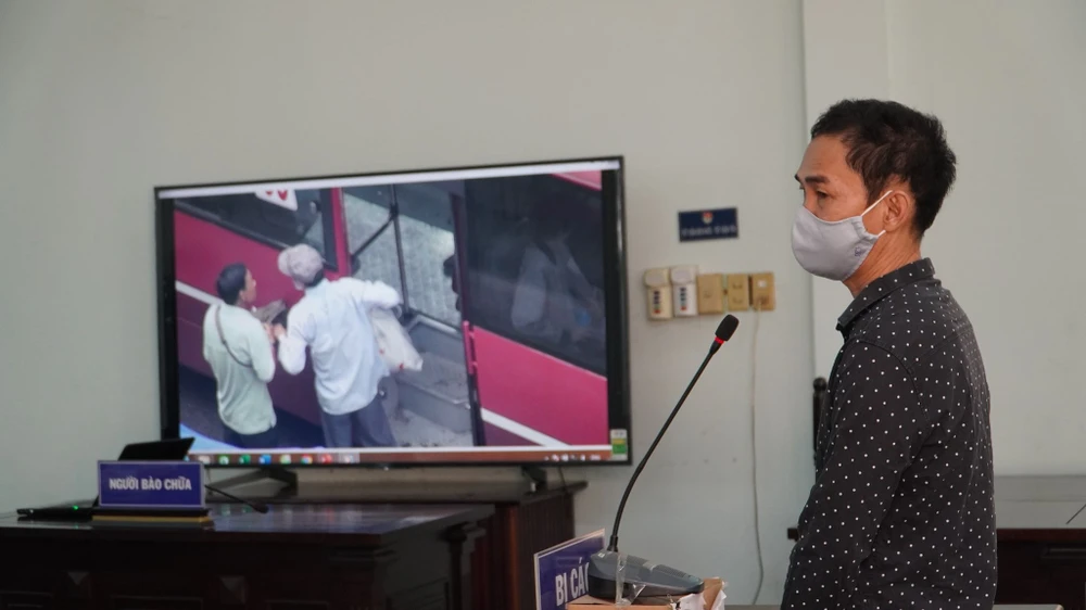 Clip do Pháp Luật TP.HCM cung cấp được chiếu clip lên màn hình ti vi trong phòng xử án. Ảnh: M.Tâm