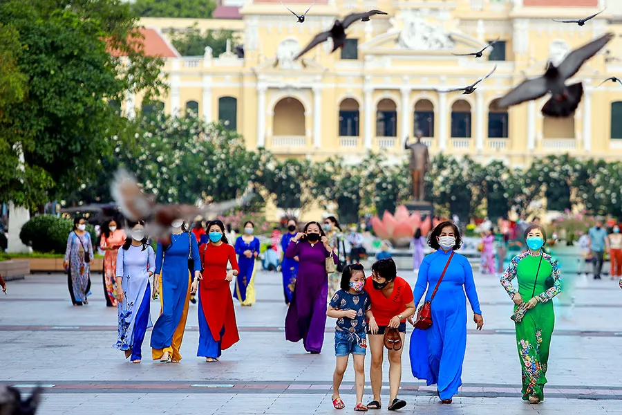 Người dân TP.HCM vui chơi tại phố đi bộ Nguyễn Huệ. Ảnh: NGUYỆT NHI