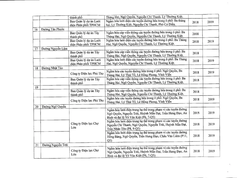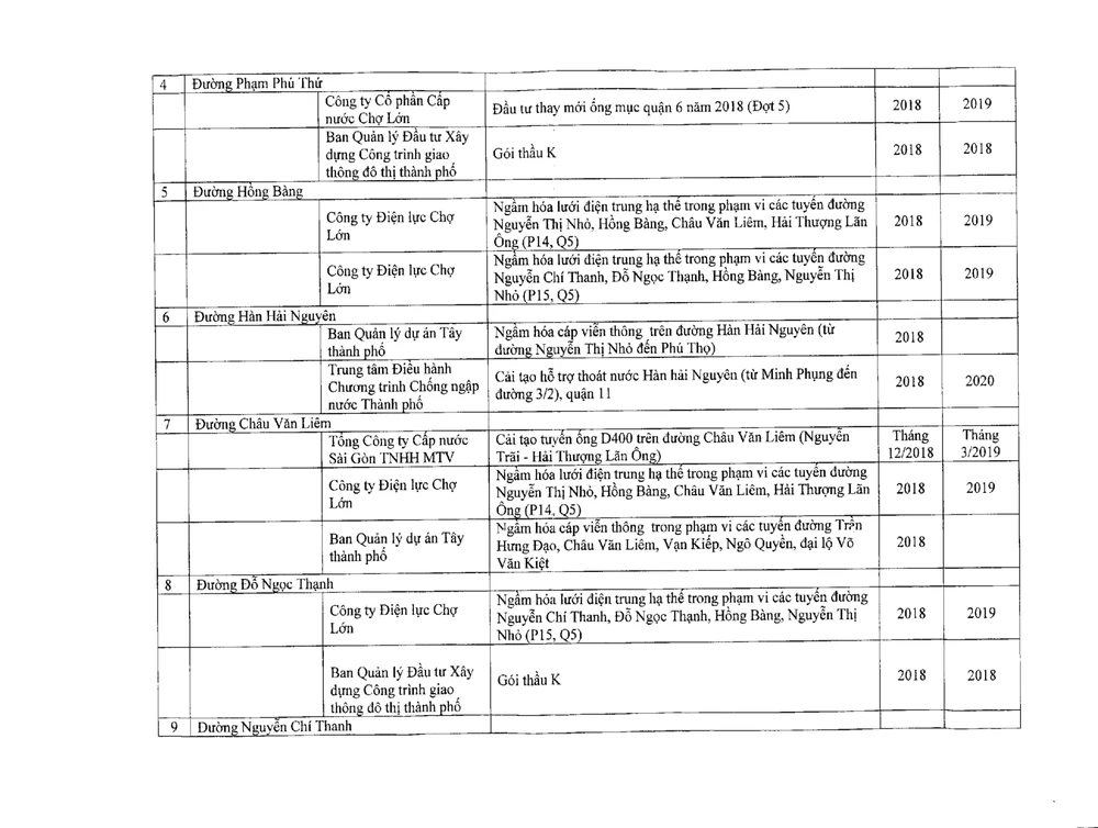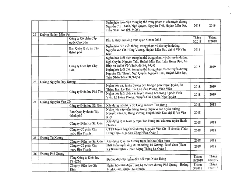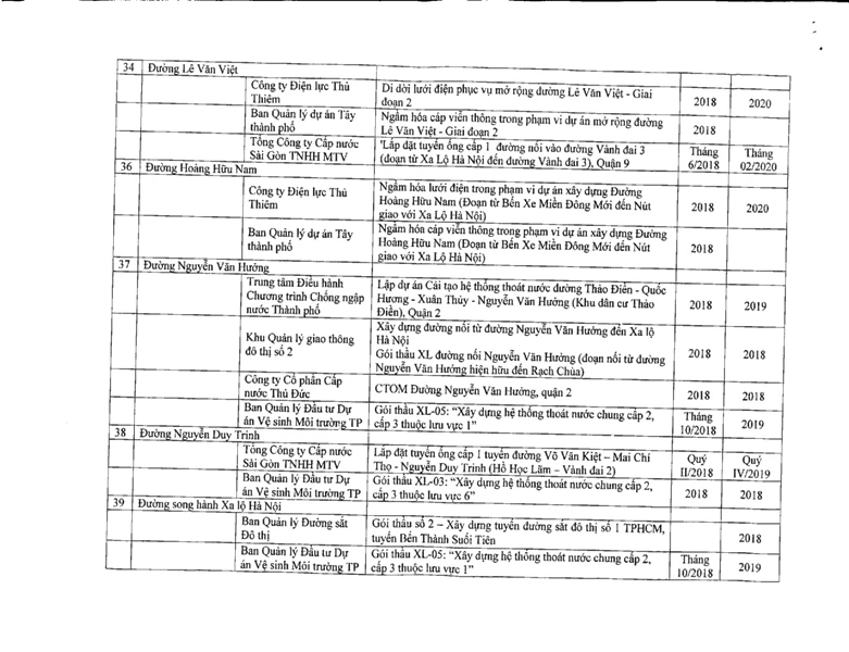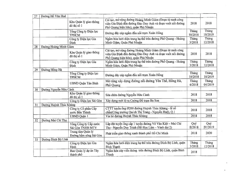Số liệu trên vừa được Sở GTVT TP.HCM gửi cho các chủ đầu tư công trình có liên quan để phối hợp thi công, tránh tình trạng đường bị đào xới, tái lập nhiều lần, ảnh hưởng đến giao thông cũng như đời sống của người dân.