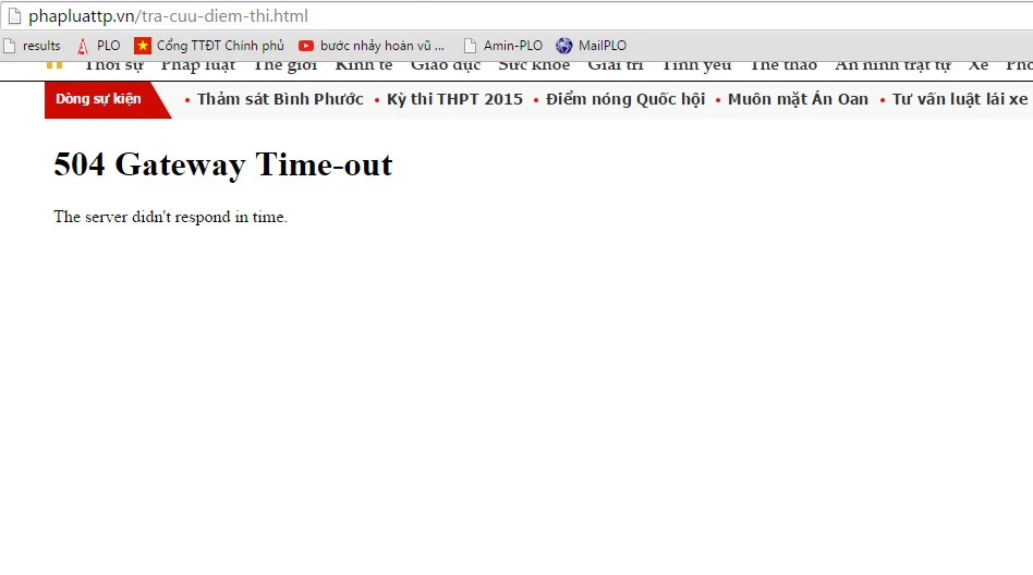 Tính đến 16 giờ chiều, ngày 22-7, sau 1 tiếng rưỡi Bộ GD-ĐT chính thức công bố điểm thi THPT quốc gia năm 2015, các website chính thức tra cứu điểm thi do Bộ GD-ĐT công bố phần lớn bị nghẽn không đăng nhập vào được.