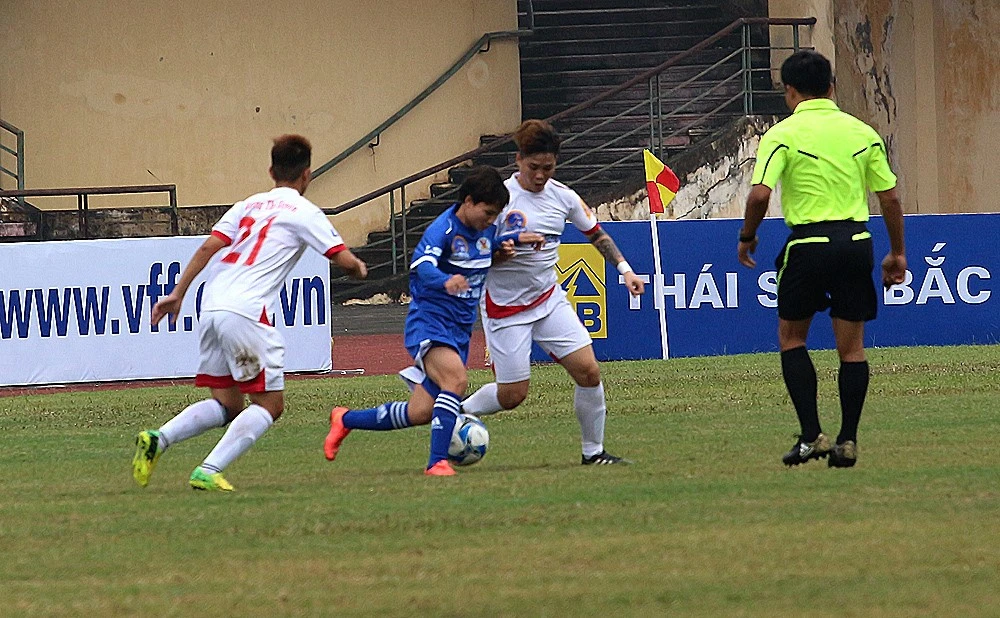 Than Khoáng Sản Việt Nam (xanh) đã thắng Thái Nguyên 2-0