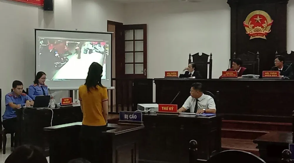 Tại tòa, nữ bị cáo được xem clip ghi lại quá trình cướp giật của mình và thừa nhận hành vi phạm tội.