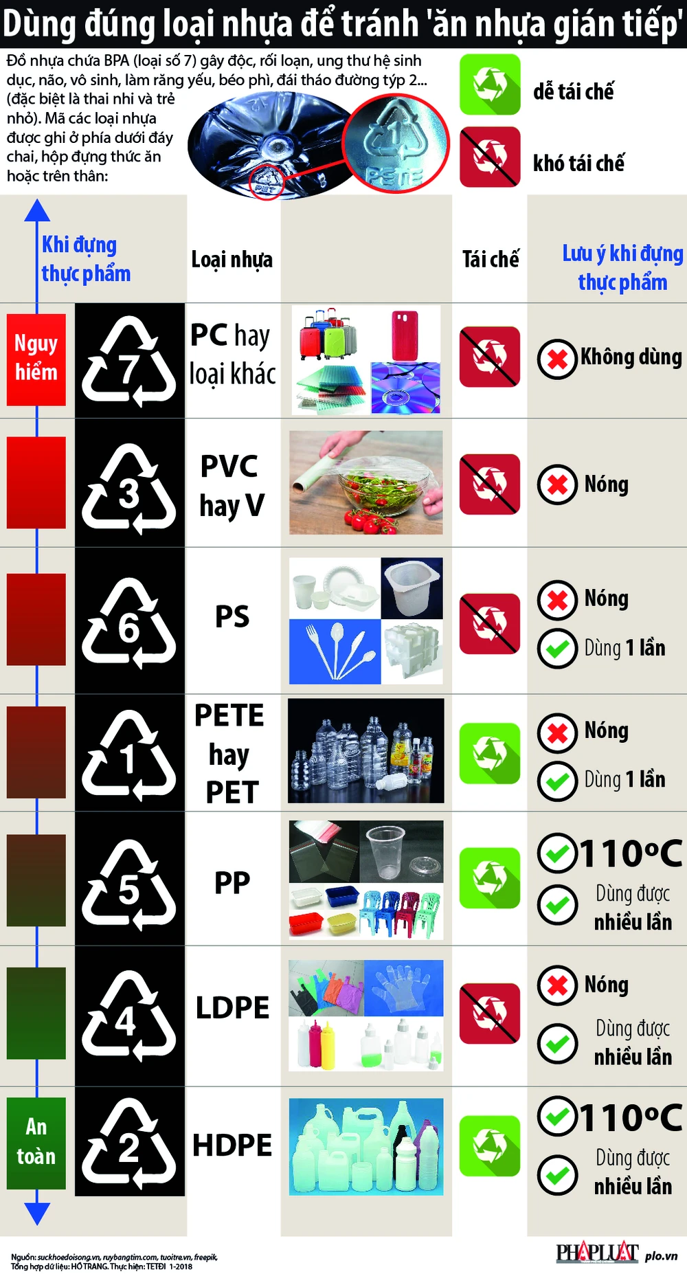 (PLO)- Mã các loại nhựa được ghi ở phía dưới đáy chai, hộp đựng thức ăn hoặc trên thân. Mặc dù ít ai để ý nhưng thực chất đây là mã an toàn khi sử dụng.