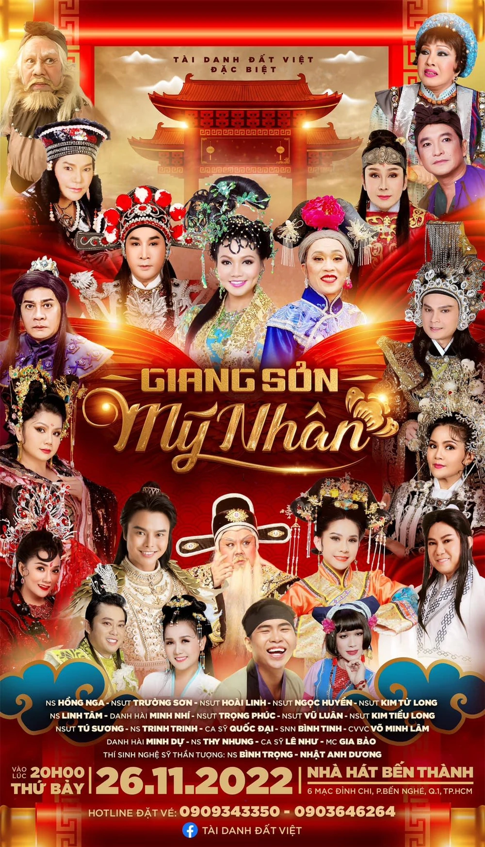 Tối nay, 26-11 tại Nhà hát Bến Thành, nghệ sĩ Gia Bảo tổ chức show diễn cải lương Giang sơn mỹ nhân với sự góp mặt của các nghệ sĩ Trường Sơn, Linh Tâm, Hoài Linh, Kim Tử Long, Ngọc Huyền, Trọng Phúc, Kim Tiểu Long, Minh Nhí, Vũ Luân, Tú Sương, Võ Minh Lâm...