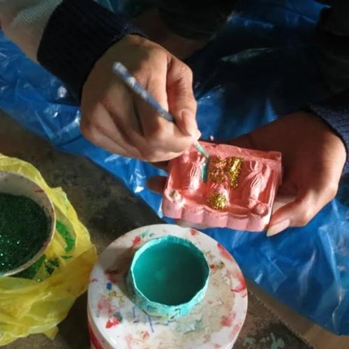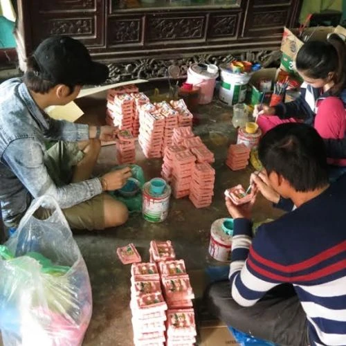 Màu để sử dụng thường là màu đỏ thẫm. Một người thợ lành nghề mỗi ngày có thể “trang điểm” cho khoảng 1.000 khuôn tượng như vậy.