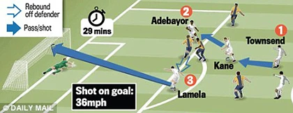 Cầu thủ người Argentina khiến Tottenham phải bỏ ra đến 30 triệu bảng mua về đã ghi bàn thắng khiến tất cả mọi người có mặt trên sân phải bật dậy reo hò phấn khích. Ngay cả các cầu thủ Tottenham chứng kiến bàn thắng đó cũng ôm đầu không tin vào mắt mình. Đó là bàn thắng nâng tỉ số lên 2-0 và cũng là bàn thắng đầu tiên của Lamela trong trận đấu.