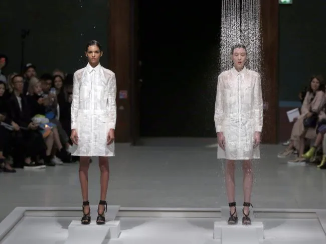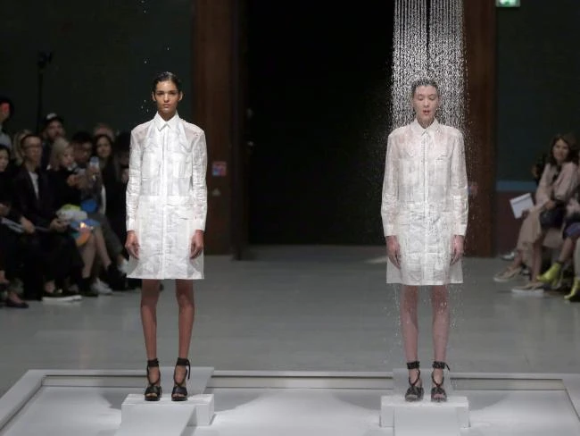 Theo News.com.au, buổi trình diễn diễn ra như mọi buổi trình diễn thời trang khác, ngoại trừ có hai cô người mẫu mặc áo khoác trắng đứng yên giữa sàn diễn “làm nền”. Một lúc sau, bất chợt nước từ trên cao tưới thẳng xuống người hai cô khiến chiếc áo khoác các cô mặc tan ra và hai bộ váy bằng vải, màu trắng đen có đính pha lê Swarovski lấp lánh xuất hiện.