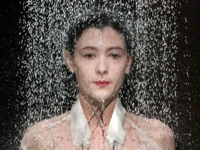 Gương mặt cô người mẫu đầy nước. (Ảnh: Reuters)