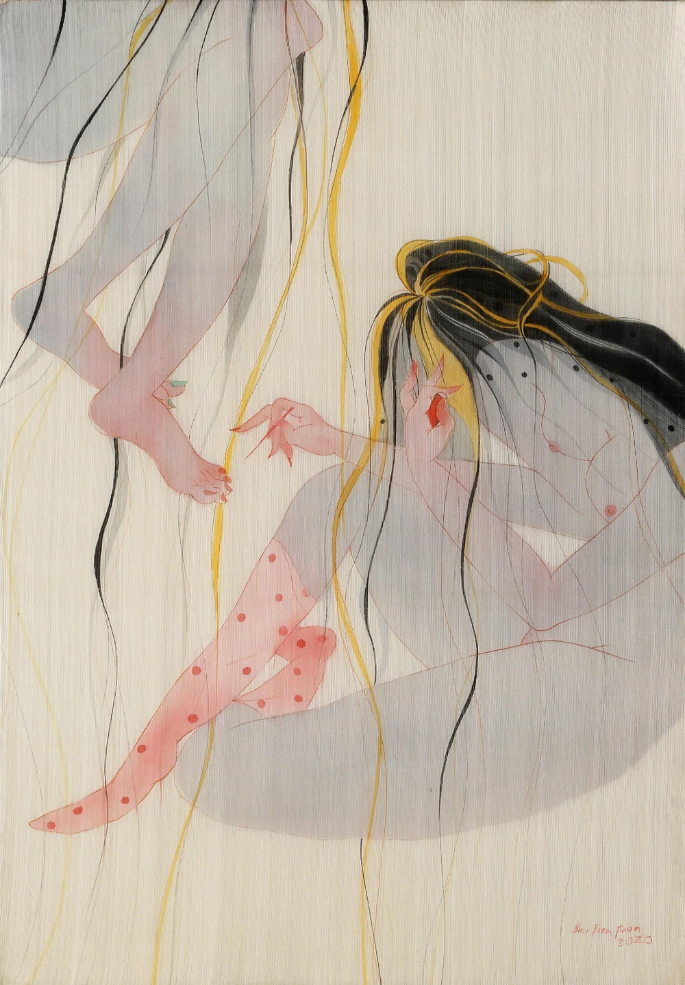 Hoạ sĩ Bùi Tiến Tuấn chia sẻ về những đứa con được cất kho lâu nay rằng: “Tôi không vẽ một hình mẫu người phụ nữ cụ thể nào, mà tôi đang vẽ những hình nhân của cái đẹp. Chính với lập trường này, khi sáng tạo tôi chưa bao giờ nghĩ mình đang lặp, đang vẽ giống với những bức tranh mình đã vẽ trước đó. Khi vẽ các bức tranh khỏa thân, thật ra tôi muốn khám phá, khai thác mọi khía cạnh, mọi khả năng của sự quyến rũ nữ tính. Ham muốn này cho phép tôi mang những hình nhân ấy đặt vào những tư thế khác nhau, những không gian khác nhau như: Cô gái đó ngả ngớn trong hộp đêm, nơi quán billiard, trong phòng riêng, lơ lửng trên mặt nước, trôi vào chân không vô định của vũ trụ thăm thẳm… Nghĩa là tôi đang không ngừng tìm và thấy sự lãng mạn hóa mọi khả năng mà ở đó cái đẹp của nữ tính hiện diện. Nên đôi khi nó vượt qua tính hợp lý bên ngoài của đời sống để đi đến sự hợp lý bên trong của tính nguyên lý. Bản chất dịu dàng, uyển chuyển của lụa dường như đang đồng lõa với lập trường đó của tôi”.