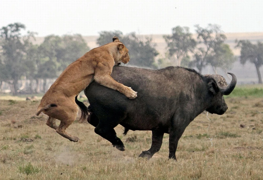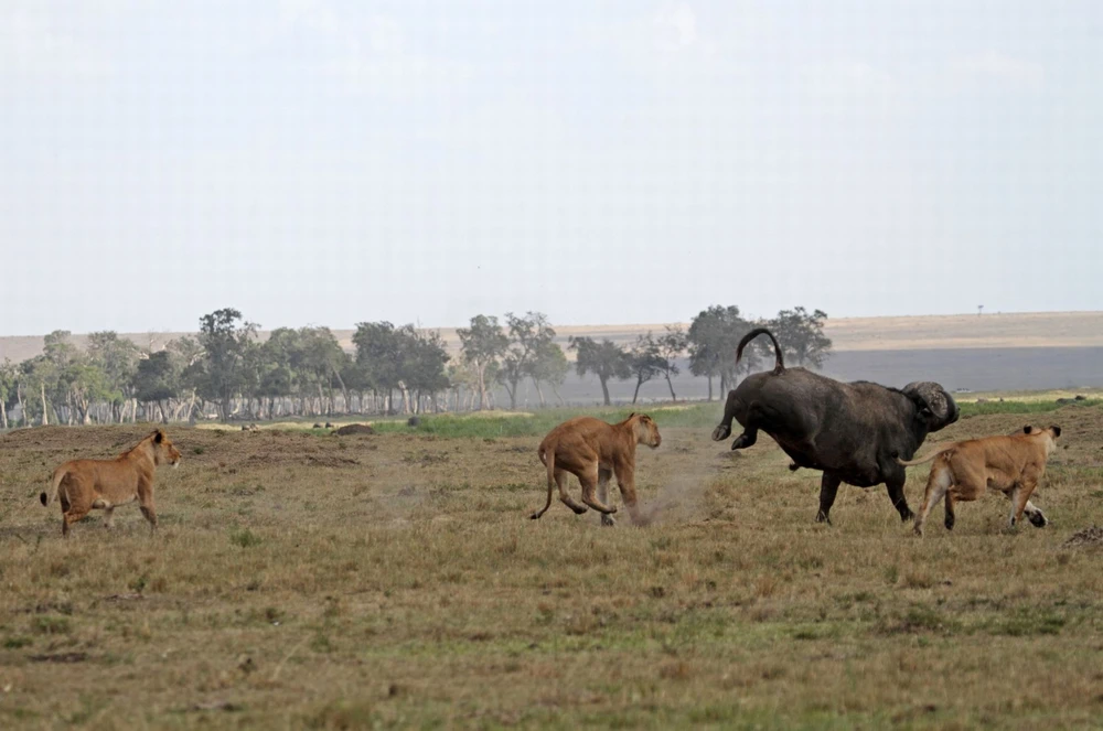 Thông thường phải vài con sư tử mới có thể hạ gục được một chú trâu. Rõ ràng trong trường hợp này, những chú sư tử phải gọi thêm viện binh.