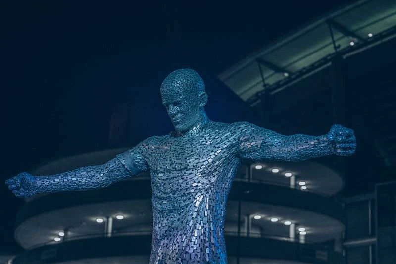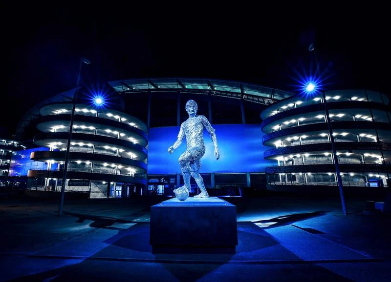 Hai bức tượng nằm ở cửa đông của sân Etihad.