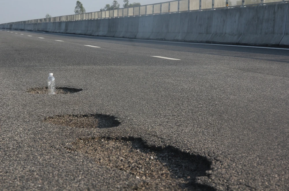 Ổ gà xuất hiện rải rác trên cao tốc Đà Nẵng-Quảng Ngãi. Ảnh: TH