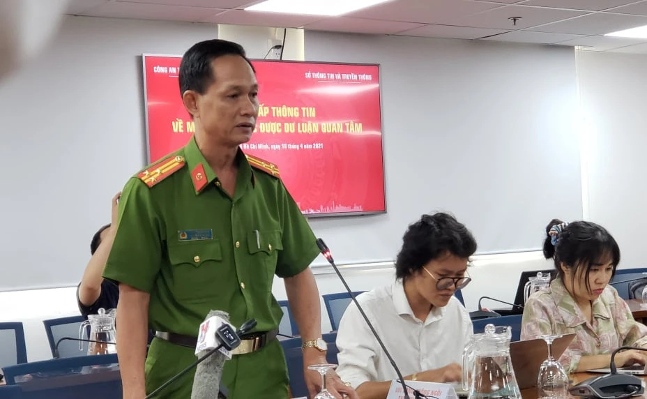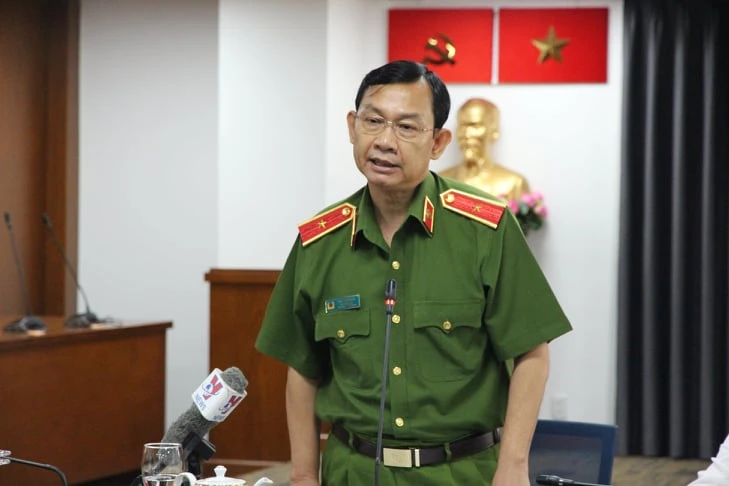 Thiếu tướng Đinh Thanh Nhàn, Phó Giám đốc Công an TP.HCM thông tin tại họp báo. Ảnh: TỰ SANG