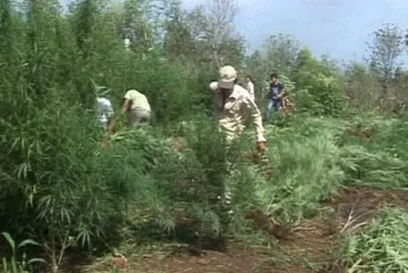 Công an xã nhổ bỏ tiêu hủy cần sa trong vườn nhà dân