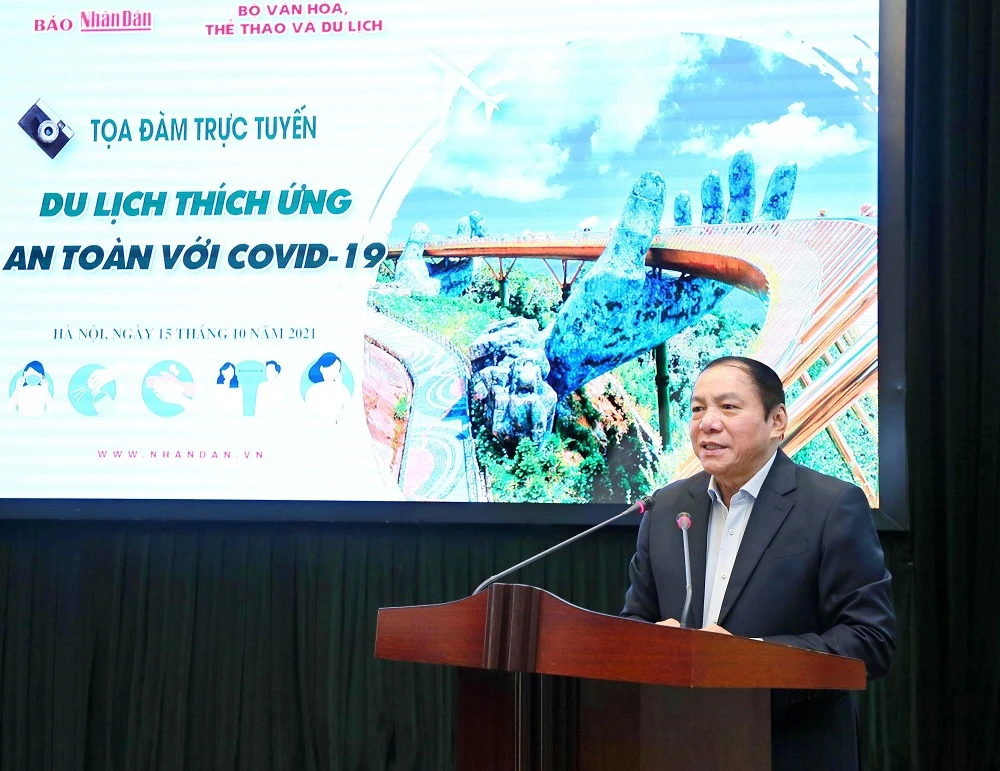 "Qua khảo sát sơ bộ, tâm lý người đi du lịch có sự thay đổi. Nếu trước đây, khách đi theo nhóm đông, tour lớn thì nay đi theo nhóm nhỏ, gia đình" - Bộ trưởng VH-TT&DL Nguyễn Văn Hùng cho biết tại tọa đàm Du lịch thích ứng an toàn với COVID-19 do báo Nhân Dân phối hợp tổ chức, sáng 15-10.