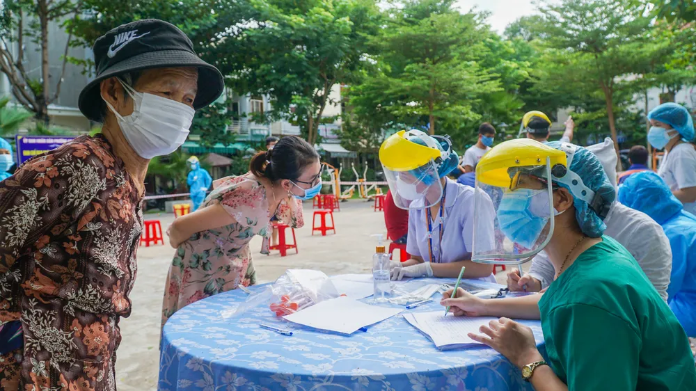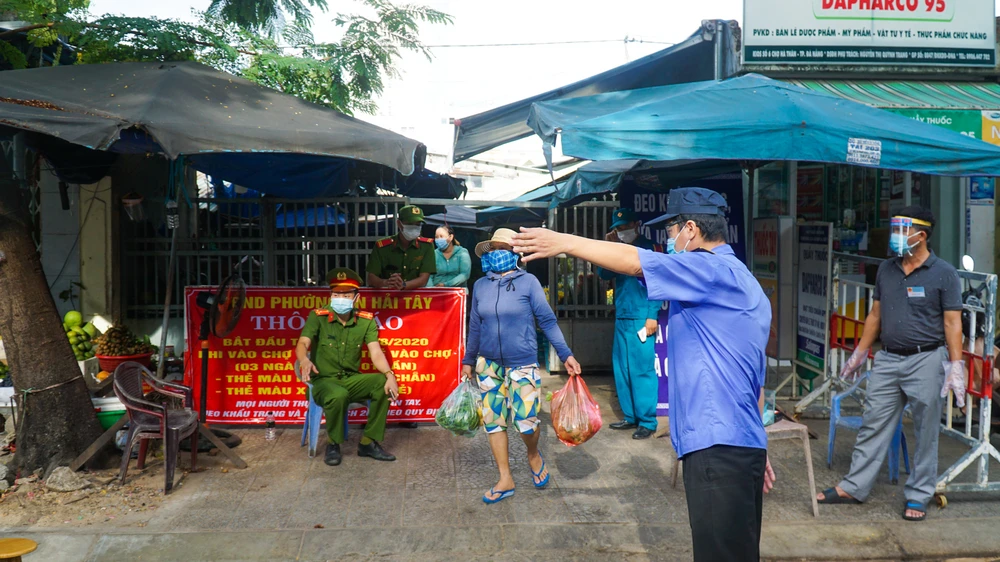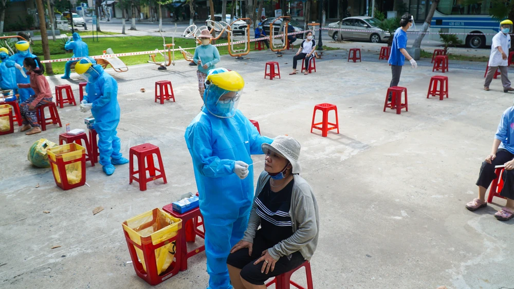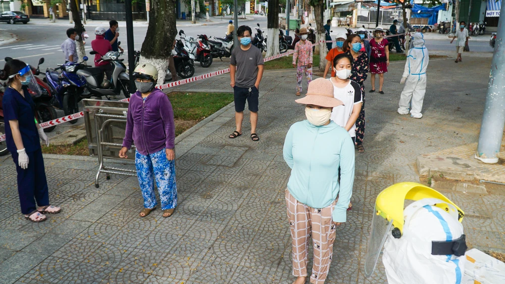 Ghi nhận của PLO, ngày 23-8, người dân đứng xếp hàng để chờ lấy mẫu bệnh phẩm tại khu vực chợ Hà Thân (phường An Hải Tây, quận Sơn Trà). Cùng ngày, công tác lấy mẫu xét nghiệm còn được triển khai ở một khu chợ khác tại phường Phước Mỹ (quận Sơn Trà)
