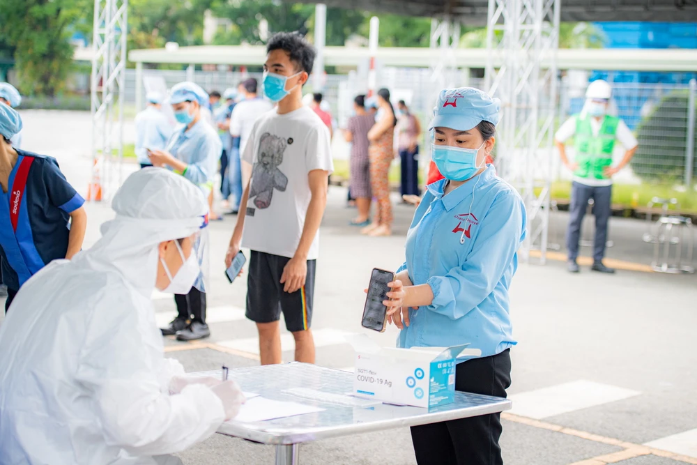 Đồng hành cùng người dân TP.HCM sớm trở lại hoạt động sản xuất, kinh doanh, từ ngày 1-10-2021, Tập đoàn Sovico thông qua Uỷ ban Mặt trận Tổ quốc TP.HCM cùng các bệnh viện, cơ sở y tế triển khai chương trình hỗ trợ 2 triệu mẫu xét nghiệm và tự xét nghiệm miễn phí cho các shipper, công nhân tại các khu công nghiệp, bà con tiểu thương các chợ đầu mối, chợ dân sinh, trường học… với ứng dụng công nghệ và đăng ký theo khung giờ, trả kết quả trực tuyến với mã QR Code. Đặc biệt, nền tảng công nghệ còn có tính năng Tự xét nghiệm dành cho mỗi cá nhân. Cụ thể, mỗi cá nhân đăng ký thông tin, khai báo y tế, chụp hình kết quả xét nghiệm, tự cập nhật và chịu trách nhiệm về kết quả xét nghiệm trên website Việt Nam Khoẻ Mạnh. Doanh nghiệp/hộ kinh doanh cá thể tổng hợp các kết quả tự xét nghiệm của các nhân viên và gửi ngay cho Trung tâm y tế thành phố, quận huyện nơi doanh nghiệp/hộ kinh doanh có trụ sở làm việc/sản xuất. Người tham gia xét nghiệm được nhận kết quả trực tuyến, có QR. Chương trình được hỗ trợ 2 triệu thẻ bảo hiểm “An tâm thu nhập” với mức hỗ trợ tới 5 triệu đồng cho các FO trong thời gian cách ly, chăm sóc y tế.