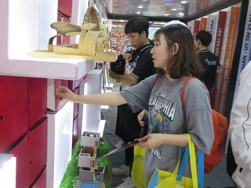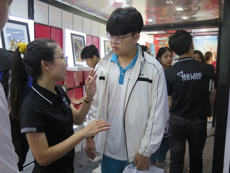 Thí sinh tìm hiểu và tham quan gian tư vấn ngành nghề của Trường ĐH Văn Lang. Ảnh: PHẠM ANH