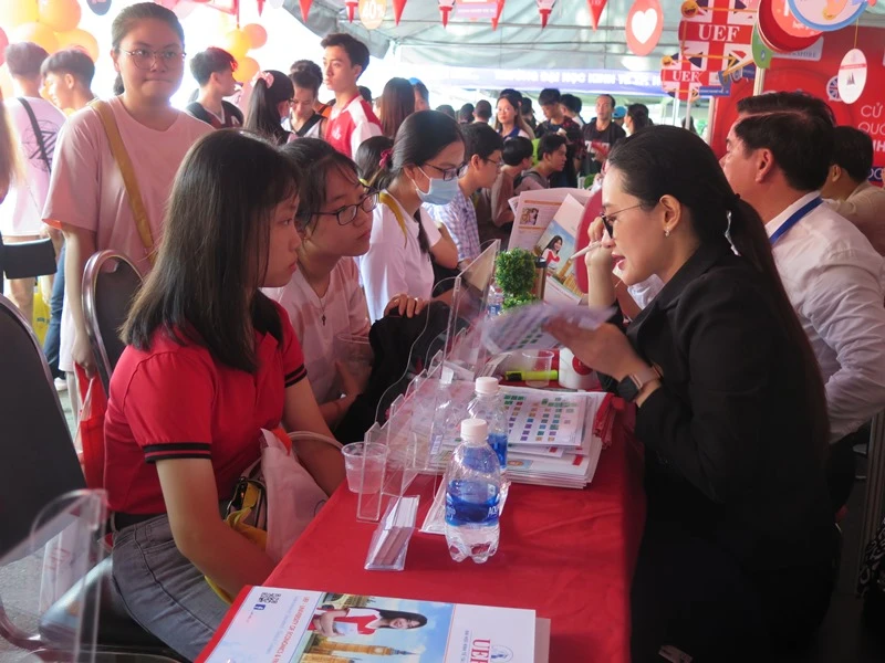 Ngày hội tại TP.HCM có hơn 200 gian tư vấn của các trường đại học, cao đẳng, trung cấp, trường nghề, trung tâm tư vấn du học... ở khu vực phía Nam.