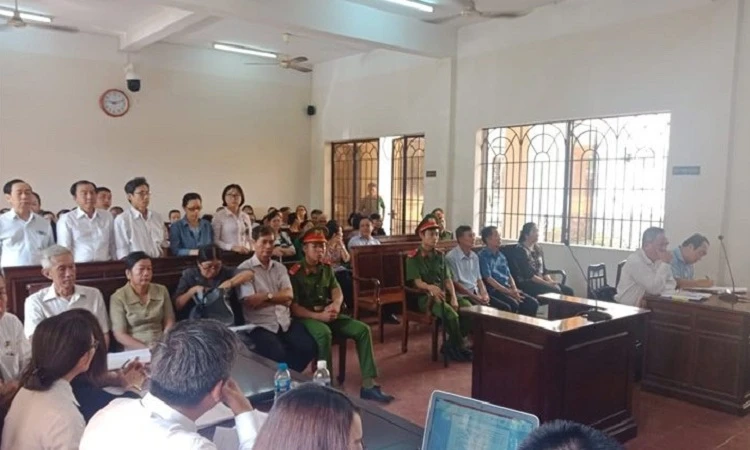 Các bị cáo và người liên quan tại tòa sáng nay, 10-10. Ảnh: VH