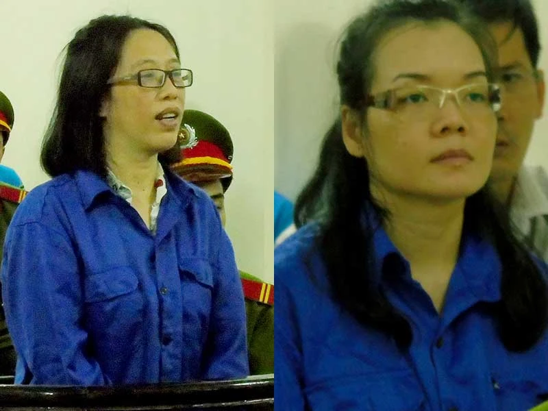 Huỳnh Thị Bảo Ngọc (trái) và Huỳnh Thị Huyền Như (phải) tại phiên tòa. Ảnh: T.PHAN