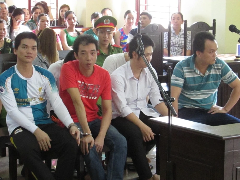 Bảy bị cáo tại tòa ngày 6-6. Ảnh: NN