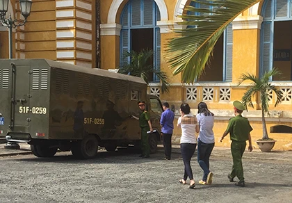 Ba bị cáo Lộc, Trân, Yến được dẫn giải về trại giam sau phiên tòa.
