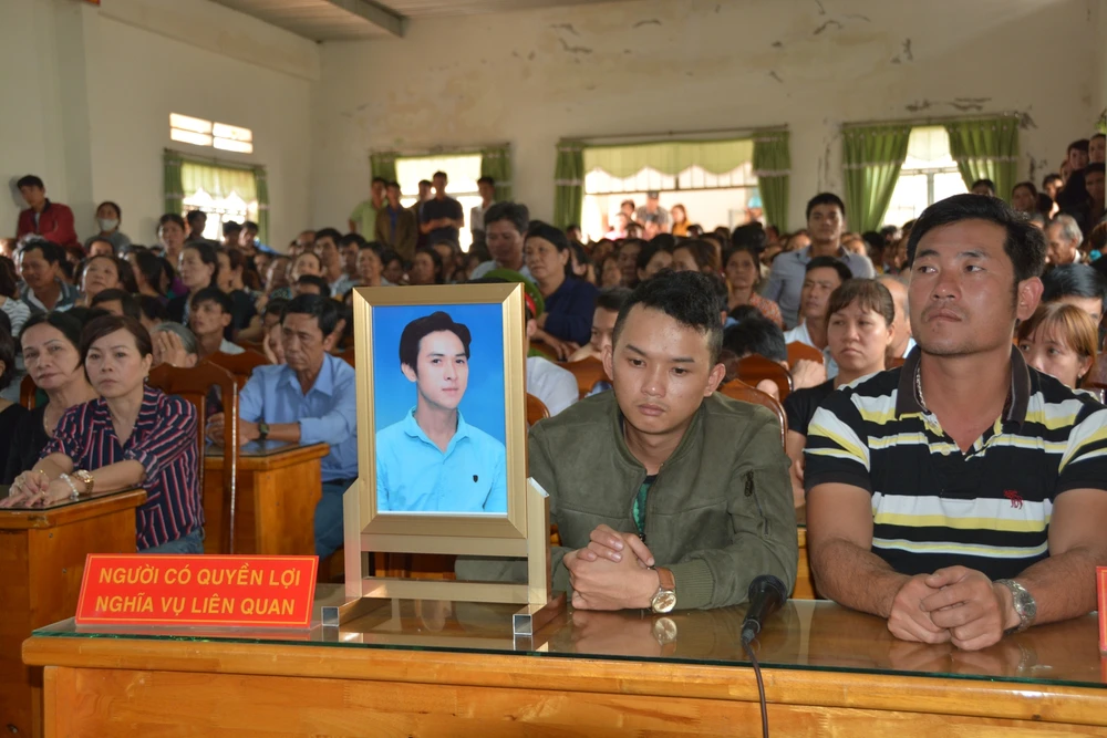 Người thân mang cả di ảnh anh Hành đến tòa.