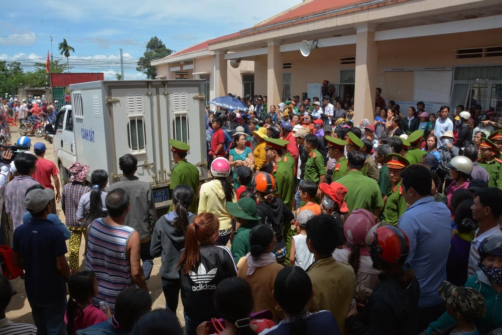 Mới sáng sớm, hàng trăm người dân ở các nơi đã kéo đến UBND xã Lộc Ngãi để theo dõi phiên tòa.