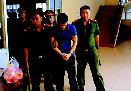 Nguyễn Thanh Ngọc đang được áp giải ra xe.