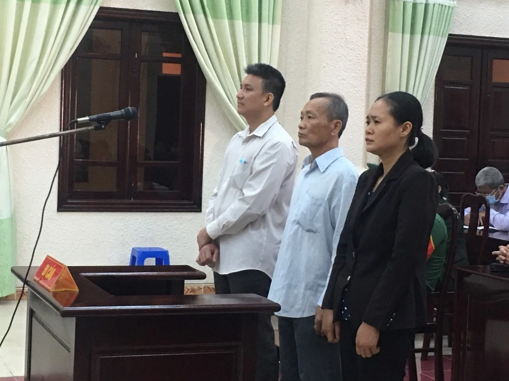 Bị cáo An (giữa) cùng hai bị cáo Hoàng và My tại tòa sơ thẩm ngày 7-1. Ảnh: NHẪN NAM