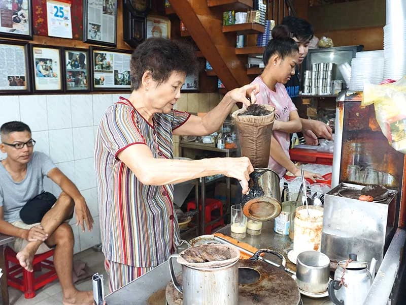 Dì Ba, chủ quán cà phê vợt ở hẻm 330 Phan Đình Phùng, Phú Nhuận có phong cách pha cà phê rất điệu nghệ. Đầu tiên dì cầm cây vợt trụng nước sôi cho sạch, giơ chiếc vợt lên cho ráo nước rồi bỏ vào vợt một ít cà phê, sau đó nhúng vợt cà phê vào siêu nước đang sôi, lấy muỗng khuấy cho đều rồi đậy nắp siêu lại. Dì làm đều tay và thanh thoát như một người nghệ sĩ. Chỉ vài phút sau, khách sẽ được thưởng thức hương vị cà phê vợt đặc trưng của Sài Gòn.