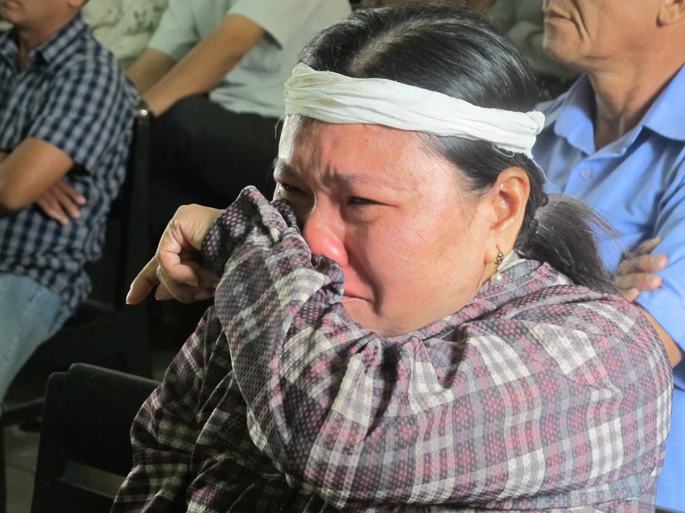 Chị Ngô Thị Tuyết (chị ruột anh Ngô Thanh Kiều) đau đớn, khóc ngất khi nghe bị cáo Thành khai các cán bộ công an thay nhau tra tấn anh Kiều