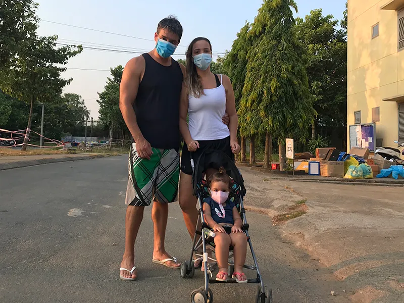 Gia đình phi công Wesley Viela cách ly tại Trung tâm giáo dục quốc phòng và an ninh - ĐH Quốc gia TP.HCM sau khi đáp chuyến bay từ Bali đến Việt Nam. Ảnh: THANH TUYỀN