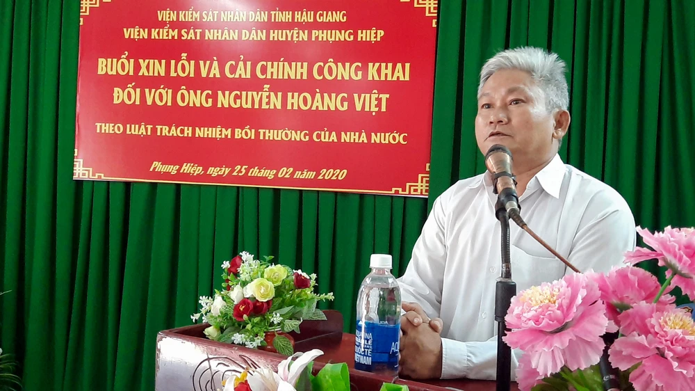 Tại buổi xin lỗi, ông Trần Trung Nghĩa, Phó Viện trưởng VKSND huyện Phụng Hiệp, thừa nhận nguyên nhân dẫn đến thiệt hại cho ông Việt là do người tiến hành tố tụng nói chung và kiểm sát viên VKSND huyện Phụng Hiệp (cũ) nói riêng.
