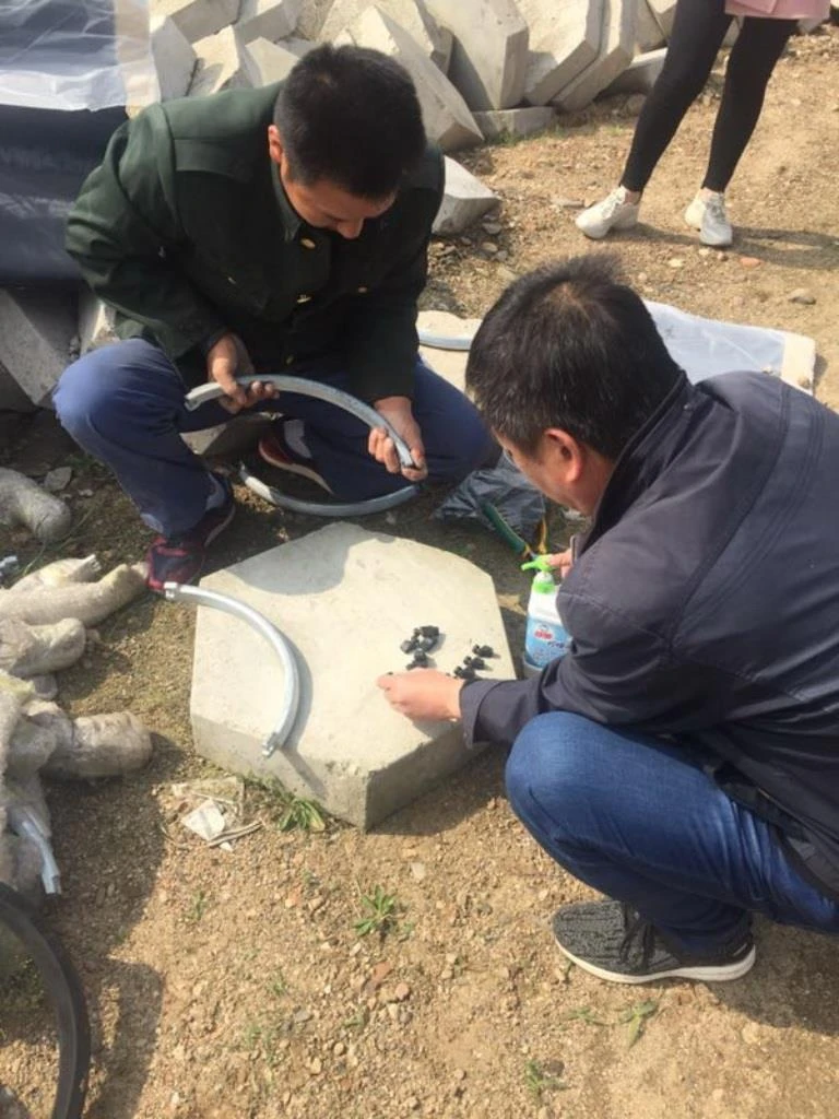 Giai đoạn tiền thi công, kỹ sư Lv Chuan Qing thuộc bộ phận kỹ thuật của XINXING đã trực tiếp đến chân công trình để khảo sát địa hình, địa chất và trao đổi kỹ thuật chi tiết với đơn vị thi công. Căn cứ vào tình hình thực tế, họ đã lựa chọn phương án kỹ thuật sử dụng ống gang cầu kết hợp với phụ kiện bịt kín để tạo ra không gian kín làm cho ống có thể nổi trên mặt nước.