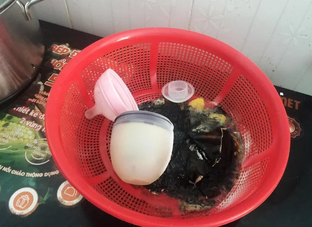 Khi tiếp cận nơi xuất phát ngọn lửa thì phát hiện khói phát ra từ rổ nhựa đặt trên bếp điện bị cháy.