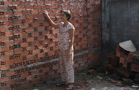 Bức tường gạch xây chắn vào trong khu trọ khu vực nhà anh Ân khiến cho mọi người không có lối đi. Ảnh: VN