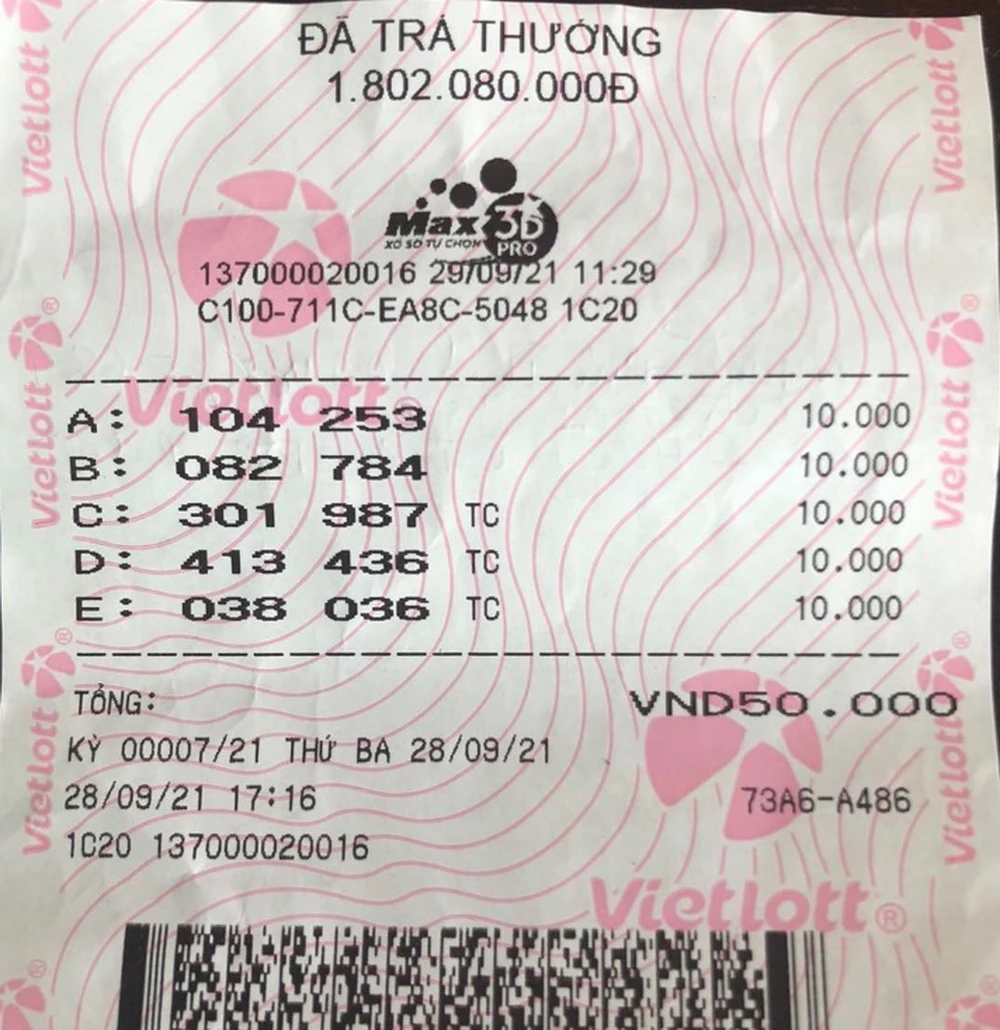 Tấm vé trúng giải Đặc biệt đầu tiên của xổ số Max 3D Pro