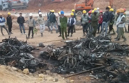 Khoảng 20 chiếc xe bị công nhân đốt. Ảnh: NGUYỄN DÂN