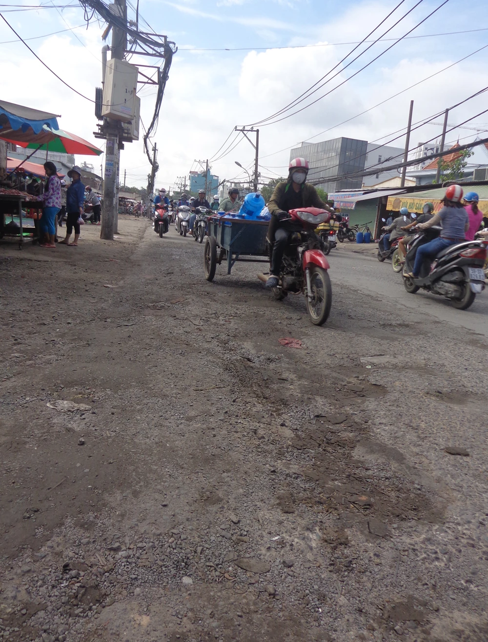 Đường hẹp và dọc tuyến nhà dân đông đúc nhưng lại thường xuyên diễn ra cảnh họp chợ lấn chiếm cả lòng đường, vỉa hè nên trên đoạn này thường xuyên ùn ứ, tắc nghẽn giao thông.