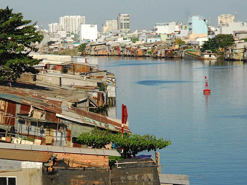 Nhà ven kênh rạch nhìn từ cầu Nguyễn Văn Cừ , TP.HCM. Ảnh: HTD